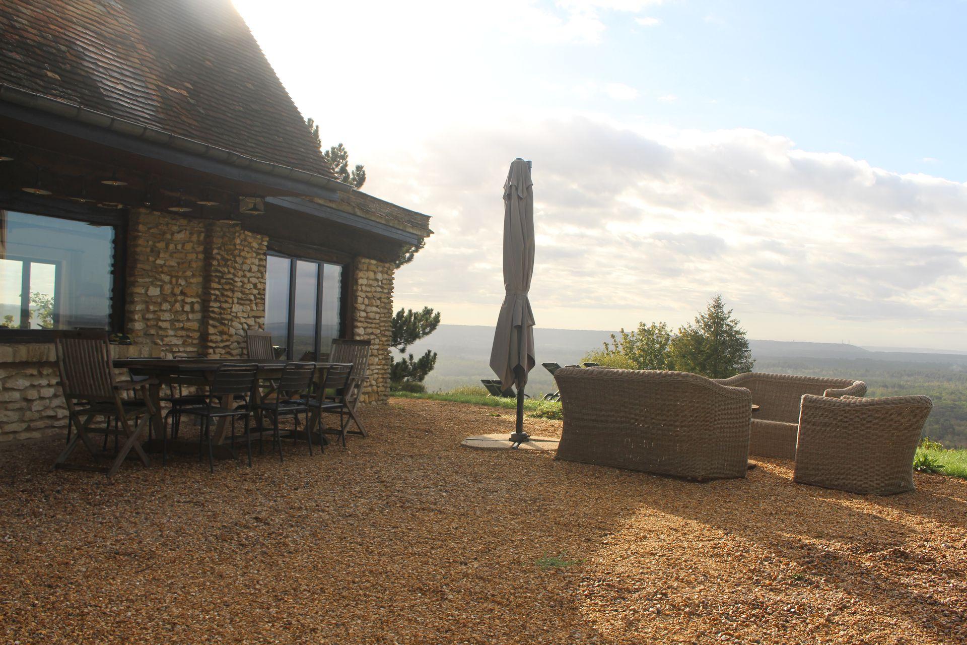 Cette maison perchée sur les hauteurs bénéficie d'une très belle vue sur la campagne alentours.